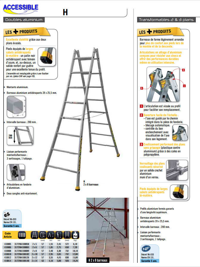 Echelle double aluminium 2 plans évasés garante d'une excellente stabilité.
